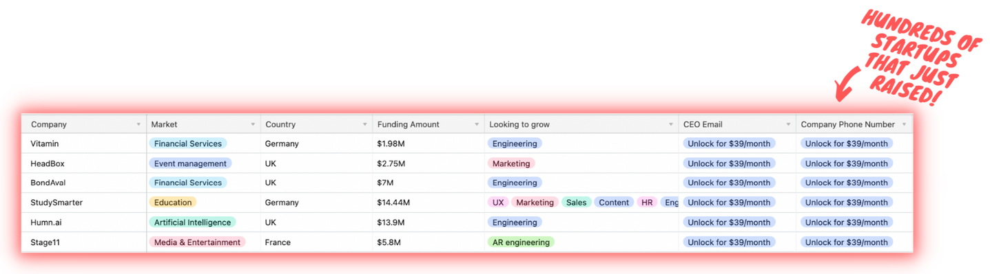 Hundreds of growing EU & UK startups to do business with. Human-verified contact and hiring data. Every month emailed to you.
